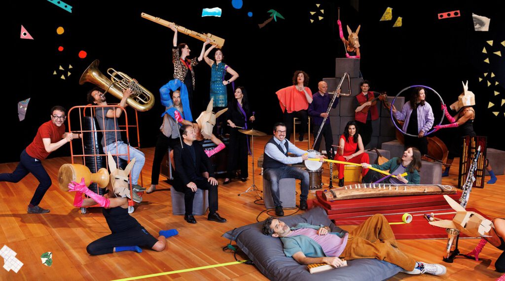 Was haben Posaune, Koto, Marimba, Schlagzeug und Kanun gemeinsam? Sie spielen natürlich alle zusammen im Orchester! Aber Achtung, nicht in jedem Orchester: das Trickster Orchestra ist da besonders. Die Musikerinnen des Orchesters bringen Instrumente aus der ganzen Welt zusammen und verweben sie zu einem flexiblen, musikalischen Dazwischen, das in den Zwischenräumen von verschiedensten Stilen und Traditionen ihr Zuhause bildet. Ganz ihrem Vorbild trickreicher Unruhestifterinnen folgend, toben sich mit vielfältigen Musiken und Genres aus und verwandeln sie in Unerwartetes. Und wir dürfen dabei sein – mitfahren auf der musikalischen Reise, mitmachen bei ihren freien, flexiblen Stücken. Wie immer heißt es: Kinder, bringt eure Erwachsene mit! Erwachsene, bringt eure Kinder mit!
